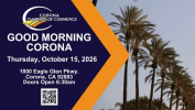 Good Morning Corona brings together the business community for a morning of networking, local updates, and valuable insights. Join us as our featured keynote speaker shares timely updates, discusses current initiatives, and highlights important issues impa